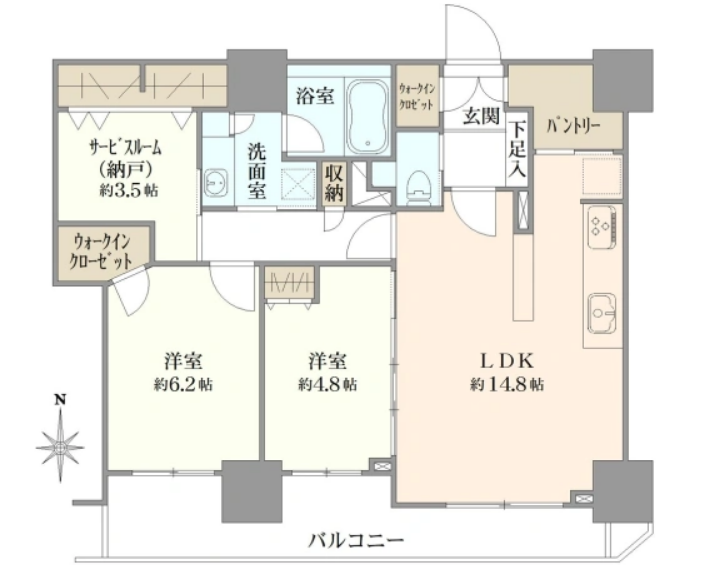 1. 户型布局:2SLDK+WIC+SIC+P户型,专有面积73.80㎡(约22.32坪),空间布局合理,活动区域开阔,卧室私密舒适。