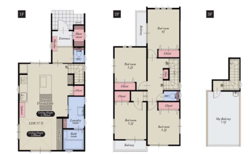 ● 空间宽敞,LDK丰富,天花板高度最高3m,约18张榻榻米