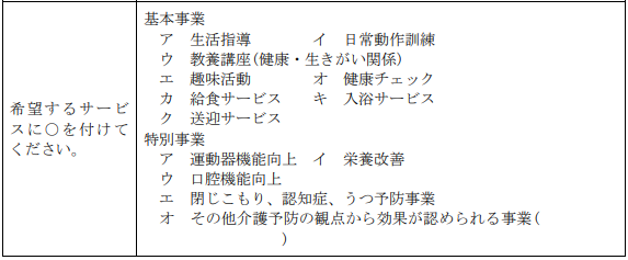 老年人据点,每周一次,每次700日元(含午餐)。老年人可以在这里聚会交流,可参加生活指导、日常动作训练、讲座、兴趣活动、健康检查、洗澡服务、接送服务等等。