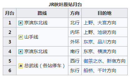 在秋叶原车站,有多条线路可以利用: