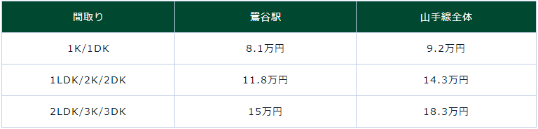 莺谷站的房租水平低于比山手线内的平均行情,可以说是性价比很好的车站。无论什么样的户型,莺谷的房租相对都很便宜。因此,对于想住在山手线车站沿线又想房租便宜的人来说,莺谷站是非常合适的。