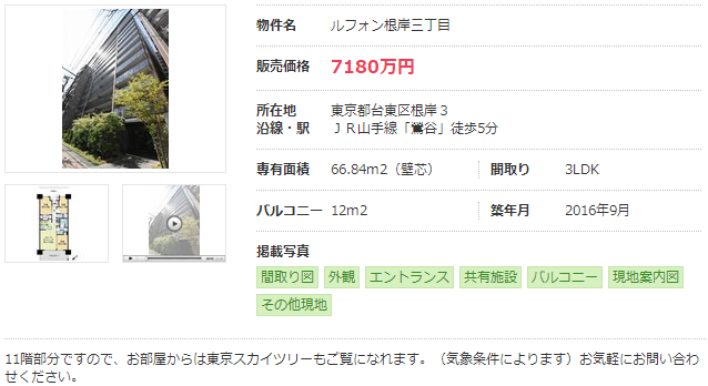 由此可见,很多人喜欢住在莺谷的主要原因还是因为房租便宜、出行便利、生活方便。而且这里的房价相对也不贵。举例来说,一间距莺谷车站步行5分钟、2016年筑的66.84平方米3LDK的二手房,市场售价为7180万日元。