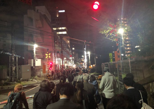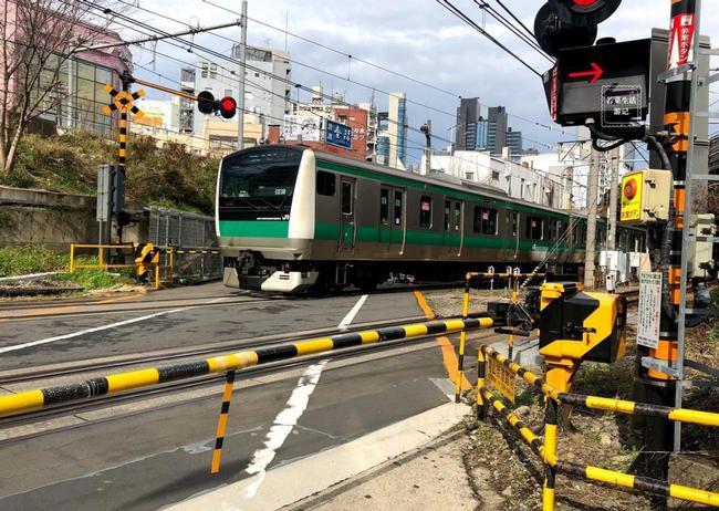 代代木站附近的中心位置竟然有4个铁路道口,步行通过的时候,道口栏杆打开即可通行。有列车通行时栏杆放下,有时等待的时间过长,会发生堵车的情况,甚至堵上几十分钟以上也并不少见。