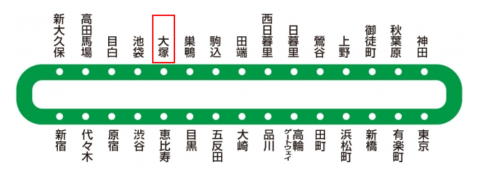 住在大冢站附近,可以乘坐JR山手线,仅需换乘一次或无需换乘,即可以轻松抵达东京都内各主要大站,出行非常便利。