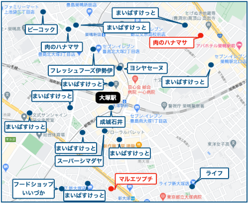 另外,大冢站周边的便利店、超市等店铺也数量众多,还有很多药妆店和24小时营业的店铺,完全不用因为购物而烦恼。