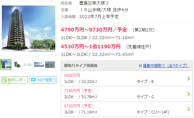 大冢周边的新建公寓项目不多,2022年7月上市的距大冢车站步行4分钟的新建公寓,户型为1LDK~3LDK,面积为32.32㎡~73.45㎡的售价为4530万~1亿1190万日元(约合262万~650万人民币)。