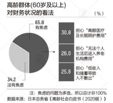 2020年的统计数据显示,日本境内65岁及以上的老年人约有3617万人,在日本1.26亿总人口中所占的比例已高达28.9%,在全球高居榜首。根据日本厚生劳动省公布的最新统计数据,日本人去年的平均寿命,女性为87.74岁,男性为81.64岁,均为史上最长。对于高龄群体备受关注的财务问题,根据调查结果显示,34.2%的受访者(60岁以上)表示“没有焦虑”。很多达到退休年龄(65岁以上)的老年人仍然继续工作。高达80%的高龄群体表示,对未来的生活有目标,不可否认,日本或已提前进入了“人生百年时代”。