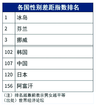 都说日本女人地位低,那到底有多低呢?让我们先看看数据,世界经济论坛(WEF)2020年发布的“性别差距指数”能够显示实现男女平等的实际情况。在156个国家的调查中,日本排在第120位,甚至排在加纳等几个非洲国家之后,处于低位(中国排名107位、韩国排名102位)。