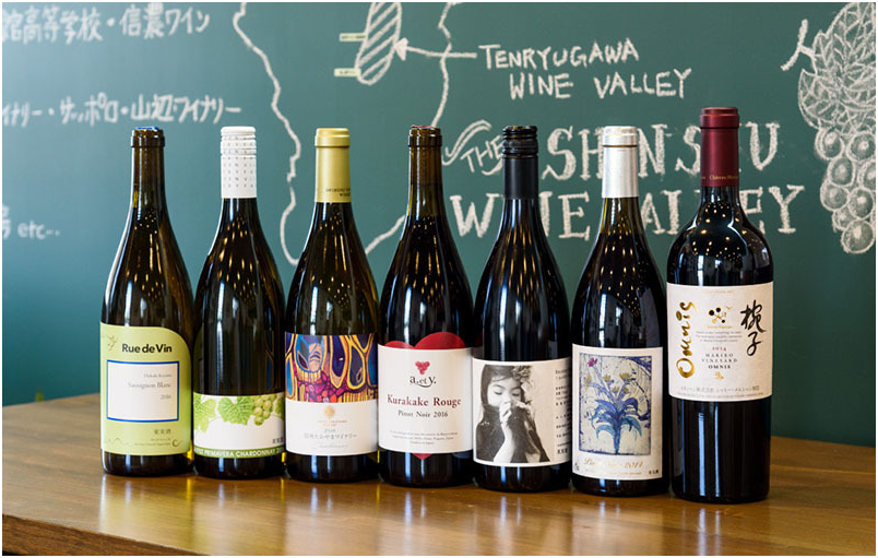 在山梨县和长野县所在的甲信地区,种植了日本本土用于白葡萄酒酿造的甲州葡萄,以及用于红葡萄酒酿造的麝香贝利A和海洛葡萄等。