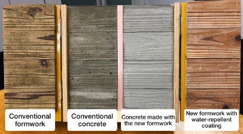 (以往的混凝土<左>与使用经过防沾水处理后的模板制作的混凝土<右>,图片来源于网络)