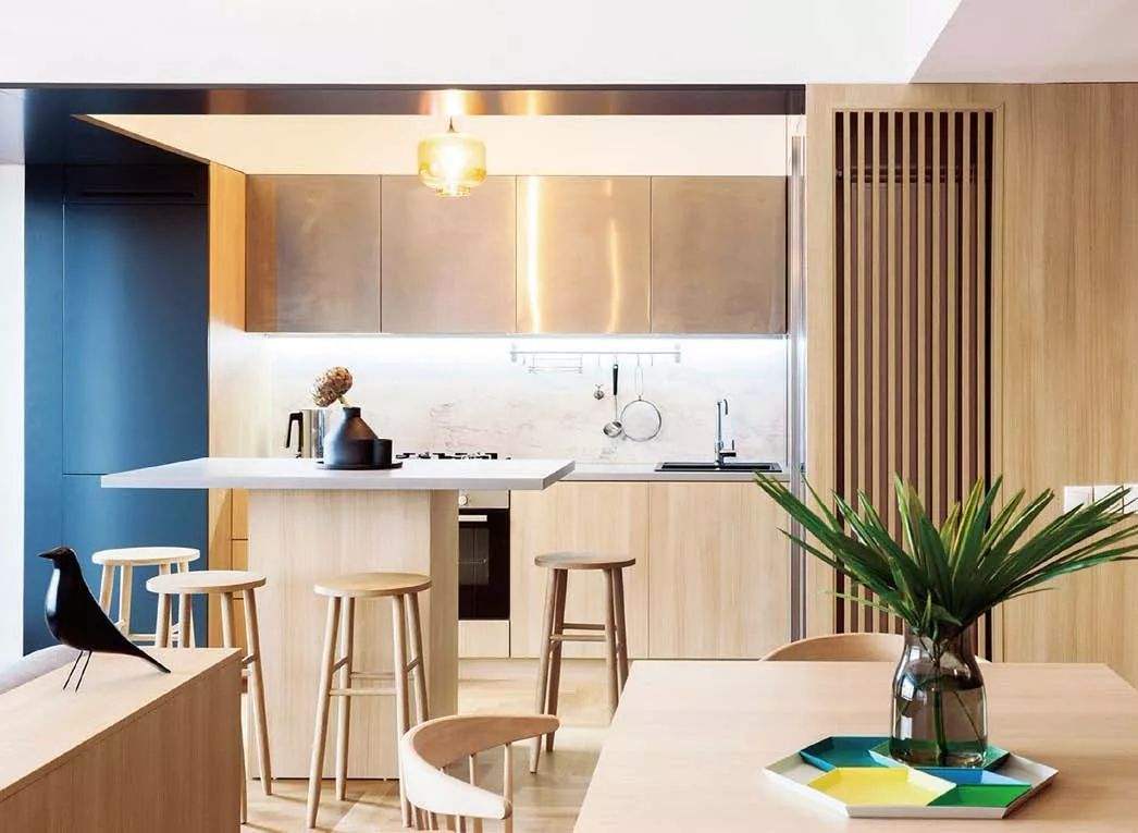 开放式的厨房也很受青睐。厨房与客厅的墙壁不见了,空间变大了,视野更宽阔了。有孩子的妈妈可以一边在厨房准备饭菜,一边照顾着客厅玩耍的小孩;或者一边看着电视,一边学着烹饪新的菜肴。最主要的,新型的厨房设备,可以有效减少做饭时的油烟,让厨房保持清洁,主妇们也少了很多清理厨房空间的劳作。
