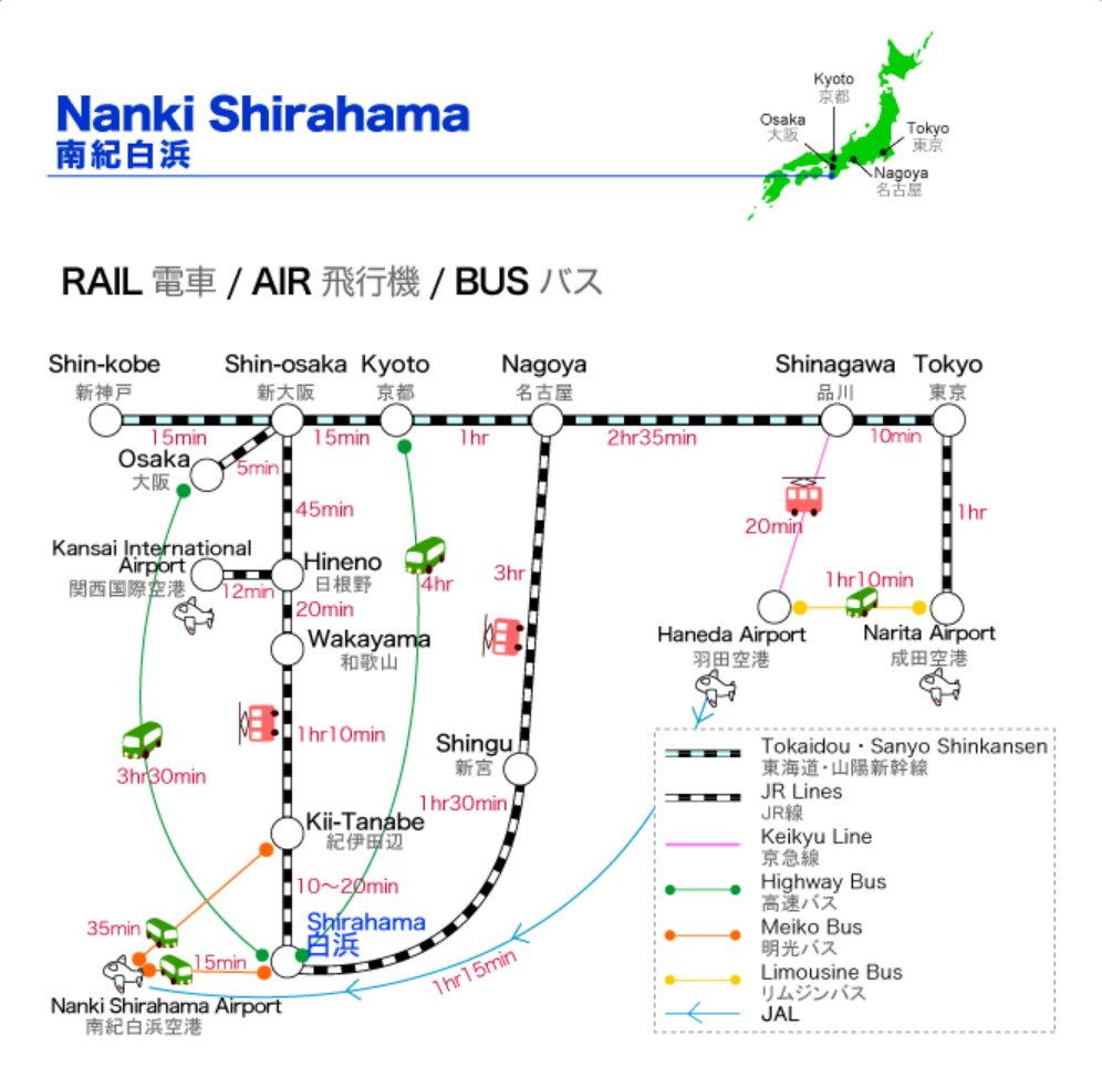 在白滨町,各种交通方式齐全,出行非常便利。不但有直达大阪机场的电铁,白滨町还有自己的机场,直飞东京也不过一个多小时。