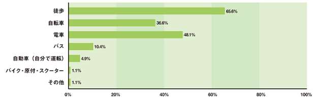 在日本,选择走路上学的学生约占7成左右,其次是搭乘电车或骑自行车。看来离学校近,能够走路上学也是一件幸福的事情。毕竟早上起的晚一点,也不用担心迟到;万一忘记带东西了也可以及时返回家中;如果参加学校里的活动或社团,即使结束晚了也不用担心错过末班车回不了家。