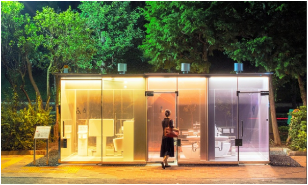为了让如厕变得更舒适,像隈研吾一样加入到公共厕所设计的建筑设计师还有很多。在日本东京都涩谷区,2022年内将完成17处由著名建筑师和设计师设计参与的公共厕所建设的“THE TOKYO TOILET”项目正在被推进。比如在涩谷的公园内刚落成不久的“透明厕所”曾一度引起热议。