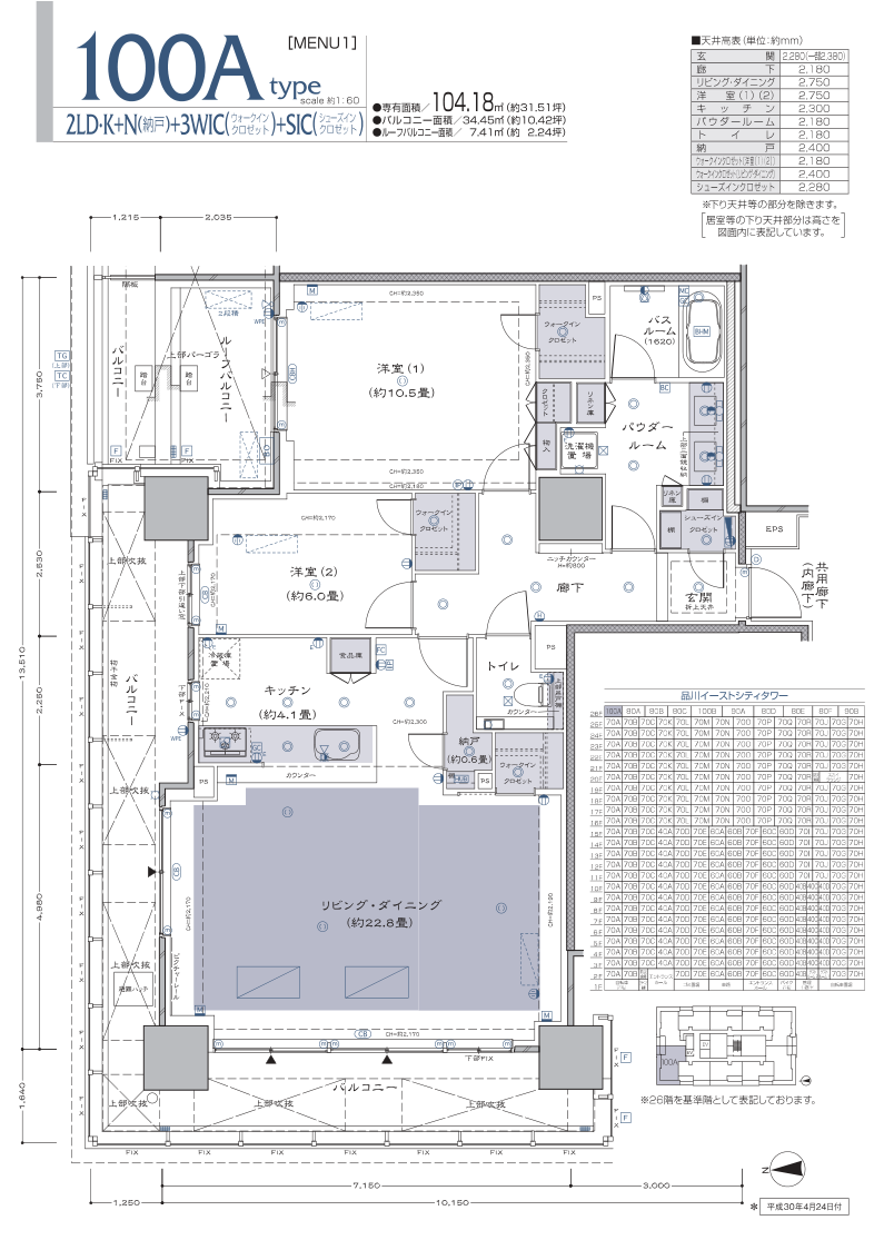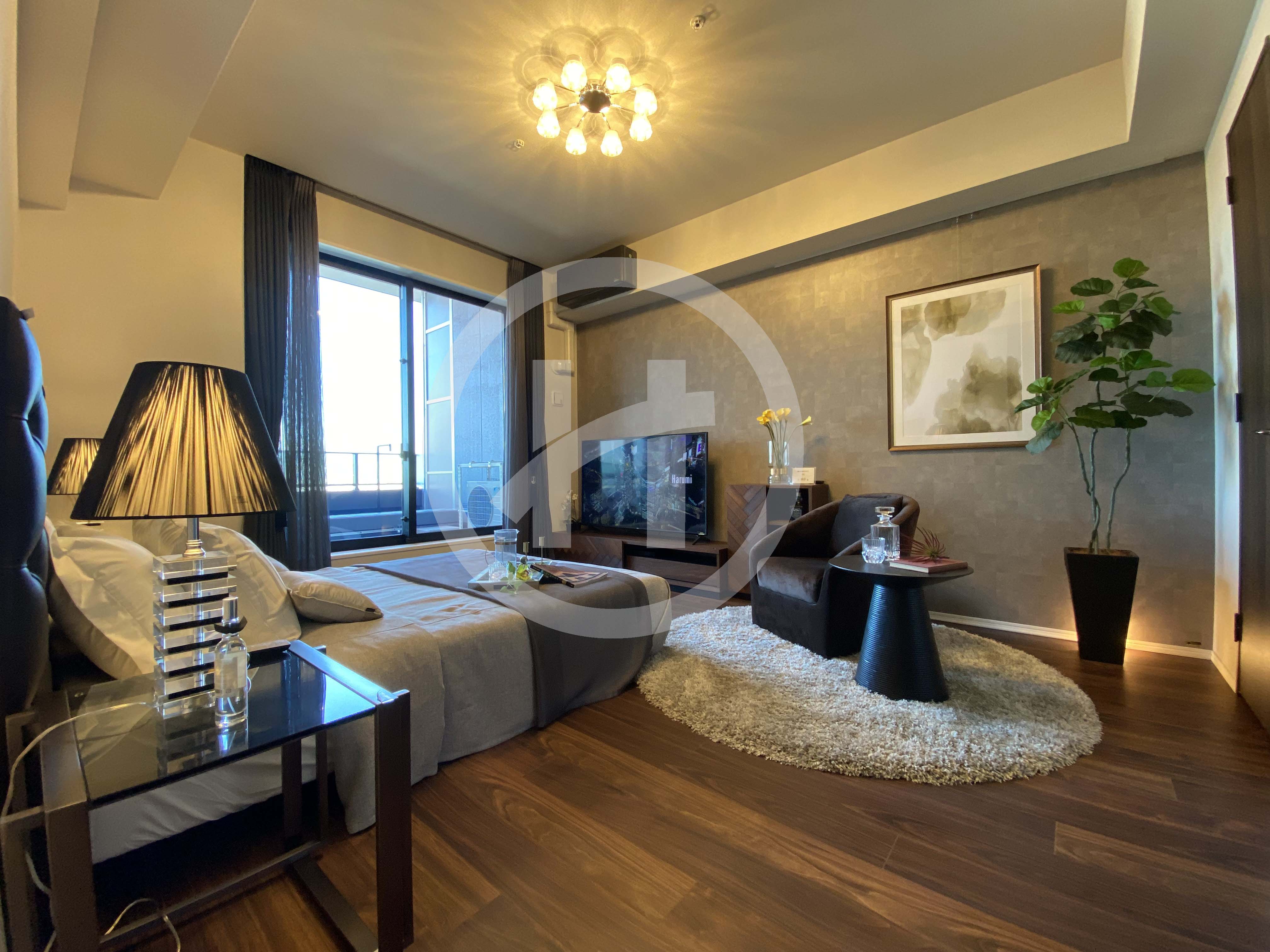 不但窗外风景独好,室内格局更显奢华。2LDK的户型(2LDK+N+3WIC+SIC),专有面积达104.18㎡,阳台面积为34.45㎡,露台面积为7.41㎡。起居室的面积是22.8帖(约37㎡),主卧面积是10.5帖(约17㎡)、次卧面积是6帖(约10㎡)、厨房面积是4.1帖(约6.6平方米)。
