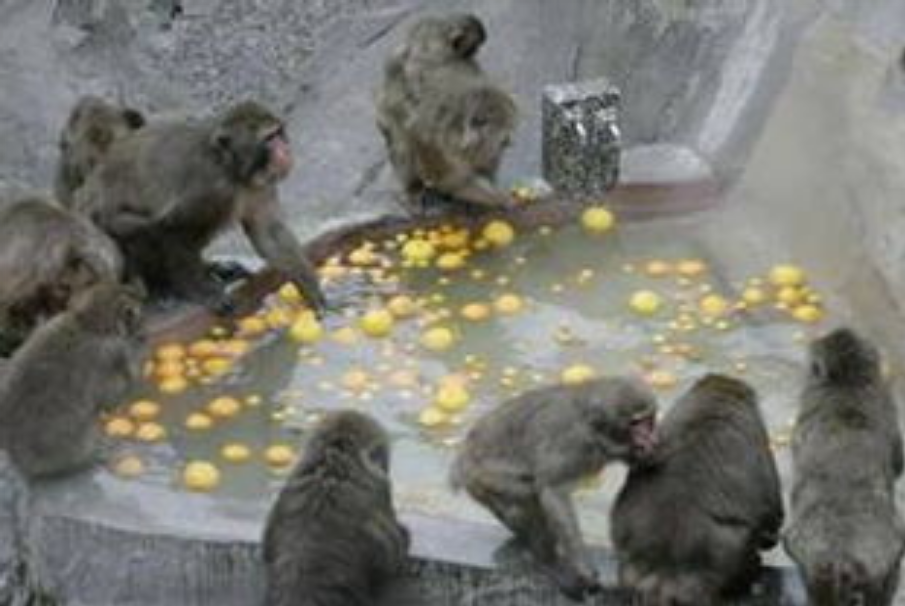 不仅如此,在一些露天温泉里,也会放入很多柚子,不仅泡温泉的人可以好好享受柚子温泉,柚子的味道往往还会招致一些如猴子等小动物的到访,于是人与动物一起泡温泉的温馨画面也成为各大媒体相继报道的新闻,也更吸引了人们想跟动物一起泡温泉的愿望。