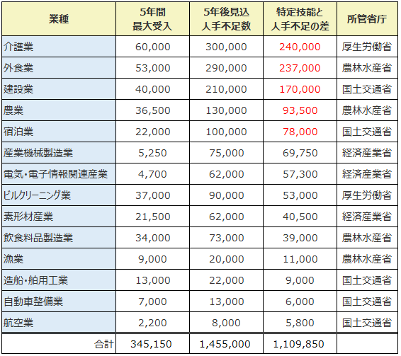 指定行业为① 建筑 ②造船・船舶用工业 ③汽车修理 ④航空 ⑤住宿 ⑥养老 ⑦大楼清洗 ⑧农业 ⑨渔业 ⑩食品饮料制造业 ⑪餐饮业 ⑫素形材产业 ⑬产业机械制造业 ⑭电气电子情报关连产业