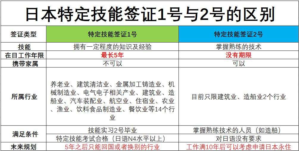 特定技能1号可以通过考试转为特定技能2号,这样也有机会携带家属及申请日本永住。