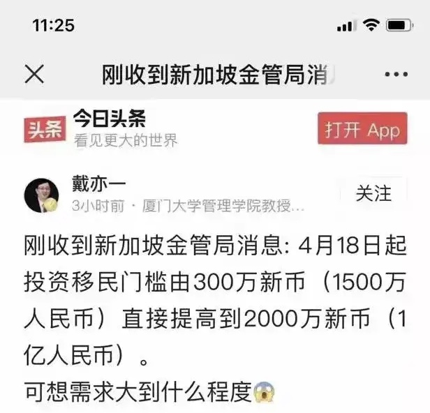 最近有消息称,新加坡突然提高了投资移民门槛,自2022年4月18日起新加坡投资移民门槛由300万新币即1500万人民币提高到2000万新币约1亿人民币,这让不少准备移民新加坡的人望而生畏。