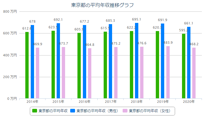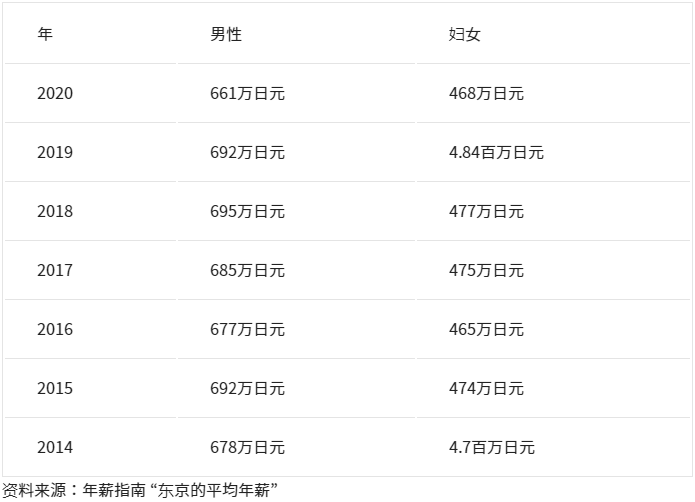 日本男女收入差距大。距离来说,2020年东京都的平均年薪,男性为661万日元、女性为468万日元。连续多年来日本全国平均年薪男女比例情况也大体相同,日本女性薪资约为男性的70%左右,而欧洲主要国家则超过80%,相比之下存在较大差异。