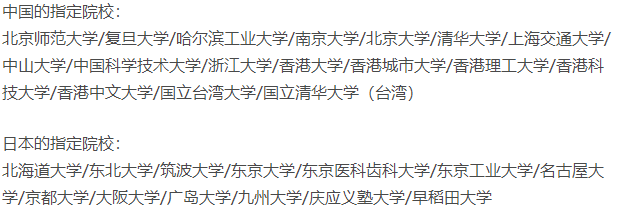 *指定大学多为世界排名前300的院校,请关注最新指定校名单。