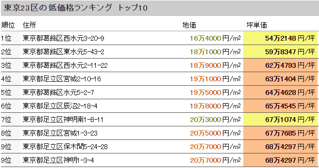 由此可以看出,同为东京23区内,土地价格相差也很大,东京最便宜的地方在葛饰区的西水元,虽然紧邻东京最大的水元公园,但土地价格竟如此之低令人咂舌,每平方米仅有16.4万日元,约合8200元人民币(汇率1:0.05)。在东京这个国际大都市中,绝对属于价格洼地了,所在的葛饰区及足立区,也被称为“下町区”,也就是老百姓居住的街区,果然是在东京也能保证老百姓能买得起房子的地方。
