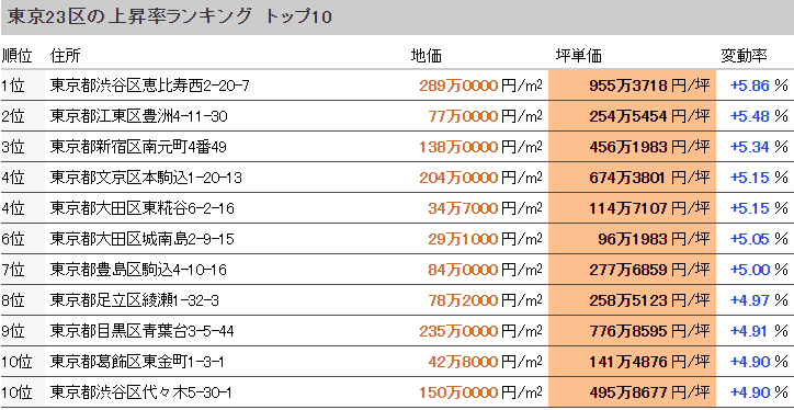 根据2022年3月的公示地价可以看出,东京23区的平均地价为每平方米166.8765万日元,约合8.3438万人民币(汇率1:0.05)。那么,在日本东京23区内,哪里的土地价格上涨最快呢?