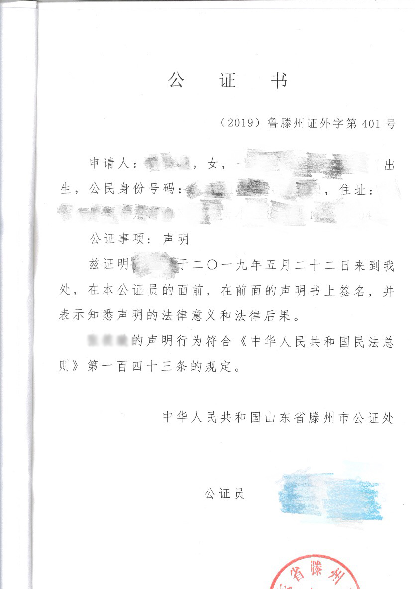 - 需要本人携带个人人名章、户口本、身份证原件,及中文声明书到户口所在地的公证处办理。建议将中文声明书的电子版备份到U盘,以备不时之需;