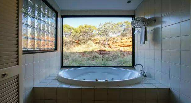 浴室是一处让人非常放松的地方,也是一处非常私人的空间,能够欣赏风景的大窗户固然让人赏心悦目,但隐私方面也一定要好好保护。