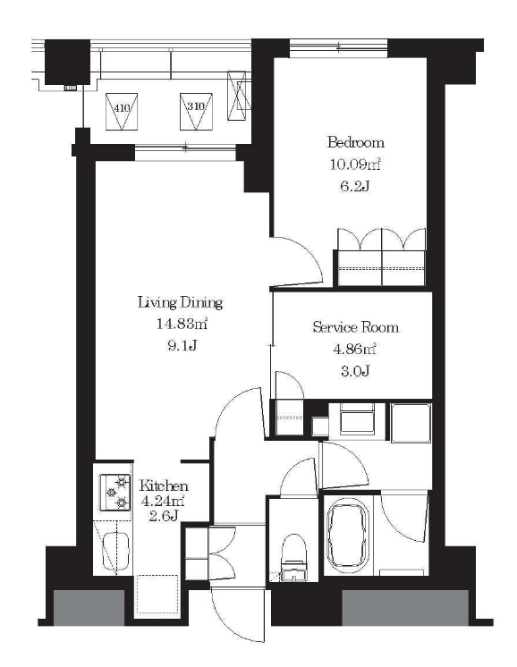1DK:带餐厅和厨房的单间公寓房,餐厅和厨房通常是一体,与卧室有明显隔断。
