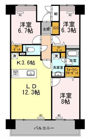 3LDK:带客厅、餐厅和厨房,有3个卧室的公寓房,客厅和厨房、卧室之间有明显的隔断。
