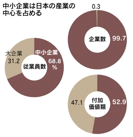 说到初创企业,就不得不提一下日本的经济产业结构,中小企业占到了总数的99.7%,员工人数占比68.8%,因此中小企业的经营状况直接关系到日本的经济。初创企业基本都是白手起家,从小规模企业逐渐发展壮大。