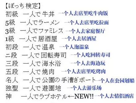 “孤独的美食家”、“一人样”、“一人食”、“一人份”、“一人暮”……属于单身人士的专有名词在日本越来越多的被发明和使用,同时日本的单身经济也随之越来越成熟。几年前,日本对一个人的孤独分了不同的等级,我们小编已经到三段了,大家可以对照一下,了解自己的孤独程度。