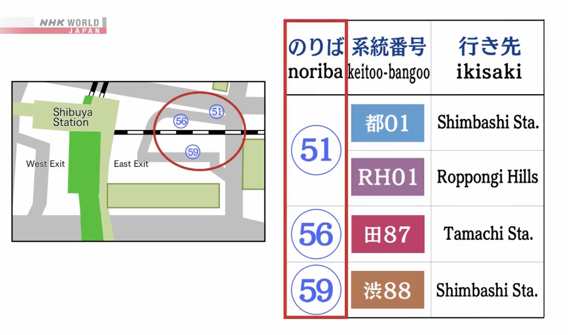 一般日本的公共汽车站牌信息,包含车站的站台号、车辆的线路号及终点站三个重要的信息。可以通过查看地图、手机电子地图、交通换乘app等来选择路线和交通工具。只要看到站台号、线路号、终点站的信息与查询结果一致,基本就不会错了。