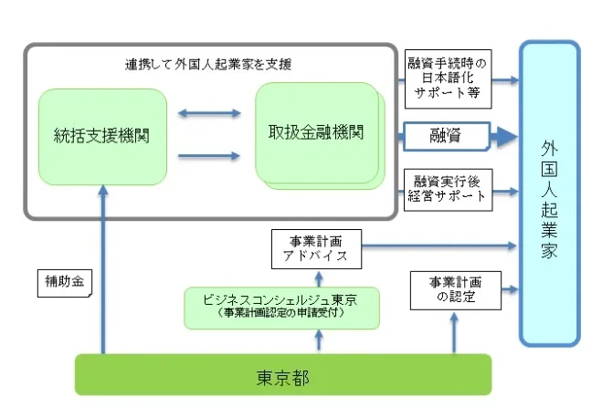 融资支援计划具体内容主要是为在东京创业的外国人提供: