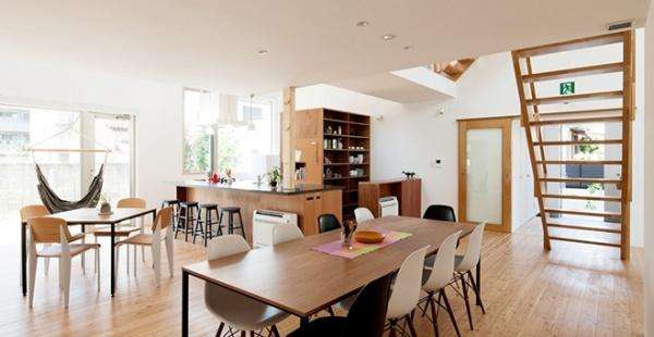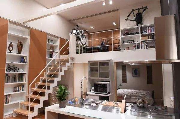 即一户建筑内楼面有两个或者多个不同的高度,错开之处有楼梯连接。即使不用墙壁隔断也能够动静分区,又因没有完全的分为两层,所以又有丰富的空间感,而且楼梯处还可以作为收纳空间。
