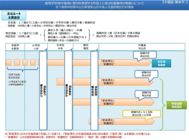 申请定住签证的关键在于,子女在小学阶段赴日,在日本接受小学到高中的教育并获得毕业证书。