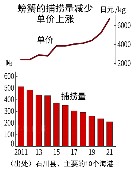 日本渔民一年中辛苦捕捞的普通鱼类仅够维持生计,而年底捕捞解禁期捕捞的螃蟹才是每年最重要的一笔收入来源,“年收入的4成是通过从11月开始、为期2个月的捕蟹获得的”。