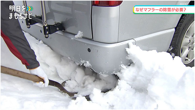 如果车尾的排气口被雪覆盖,汽车产生的废气有可能回流至车内,容易引发一氧化碳中毒。