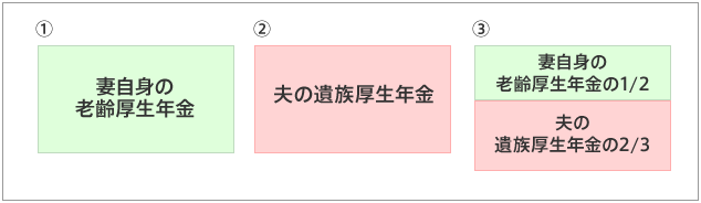 3. 遗孀自身老年厚生年金的1/2和丈夫遗属厚生年金的2/3
