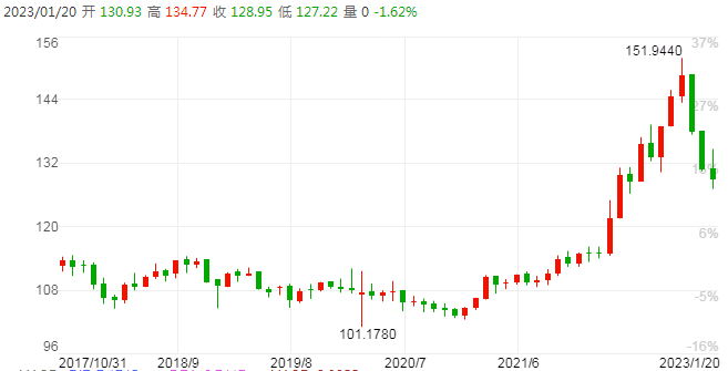 日本央行在2022年12月20日决定加息,将长期利率波动幅度由正负0.025%扩展至正负0.05%。此次调整被市场解读为日本即将结束“宽松经济”,同时汇率也迎来了“拐点”,飙升至130左右,此后便波动性回升,呈持续上升的趋势。