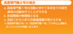 除了「高级专门职务 1 号」被许可的事业活动之外,还可以与该活动一 起从事就业在留资格所许可的几乎全部的事业活动。