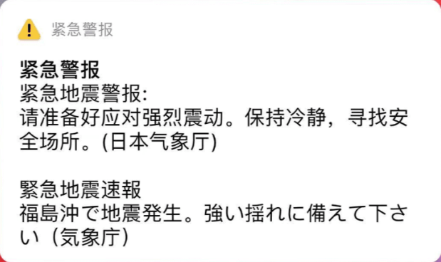 在日本生活过的人都知道,手机会时常接收到各种“警报”,比如地震预警、洪水预警、风暴预警等等,这些警报都是通过手机初始设置软件自带的警报系统,在需要预警的时候会自动发布提醒机主进行避险。