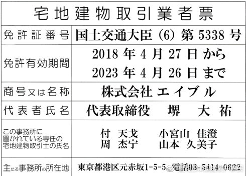 エイブル(ABLE)房产管理株式会社集团1968年成立,在房产委托管理和房产租赁中介行业有超过53年的业绩,拥有经验丰富的管理和租赁专业人员为客户提供专业服务。目前公司有专业人员3593人。
