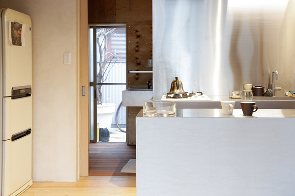 在大家对店铺内的植物园赞不绝口的称赞中,小川武却坦诚,其实自己最喜欢的却是隐藏在植物园后面的工作间。因为喜欢植物影影绰绰的影子,所以在植物园后面隔出一个小小的空间作为办公室,使用的是半透明的波浪型隔板,原本这是作为屋顶遮雨用的聚碳酸酯材料的采光板,作为温室与办公室的隔板却相当合适。一方面可以拥有相对独立的私密空间,一方面又有充足的光线和随时可以欣赏到的植物的靓影,这也是小川武在改造中颇为得意的地方。