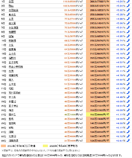 我们发布的东京都北区土地价格的市场行情,是基于公示地价和基准地价的标准地/基准地数据,由我们独立计算平均值和变动率,并按照东京都北区在全日本市区町村中的排名进行统计。