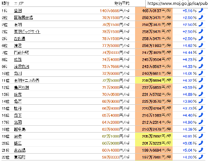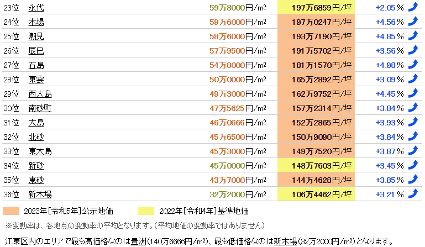 我们发布的东京都江东区土地价格的市场行情,是基于公示地价和基准地价的标准地/基准地数据,由我们独立计算平均值和变动率,并按照东京都江东区在全日本市区町村中的排名进行统计。