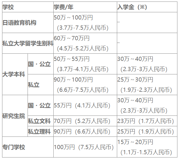 因各校的学费标准不同,请大家访问各校官方网站并确认各学部、专业的具体学费。若自费留学生支付经费有困难,请确认该校是否设有学费减免制度。