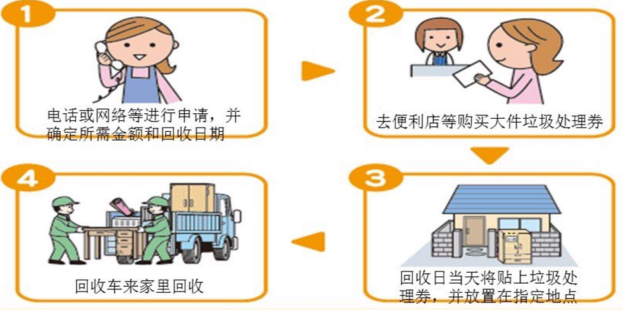 对待大件垃圾,正确的处理姿势应该是先打电话给回收公司,他们会根据大件物品的类型来估算费用和回收日期,然后去便利店购买像税票一样的大件垃圾处理券,在回收当日将处理券和详情单贴在大件垃圾上,等待回收车来拉走处理就可以了。
