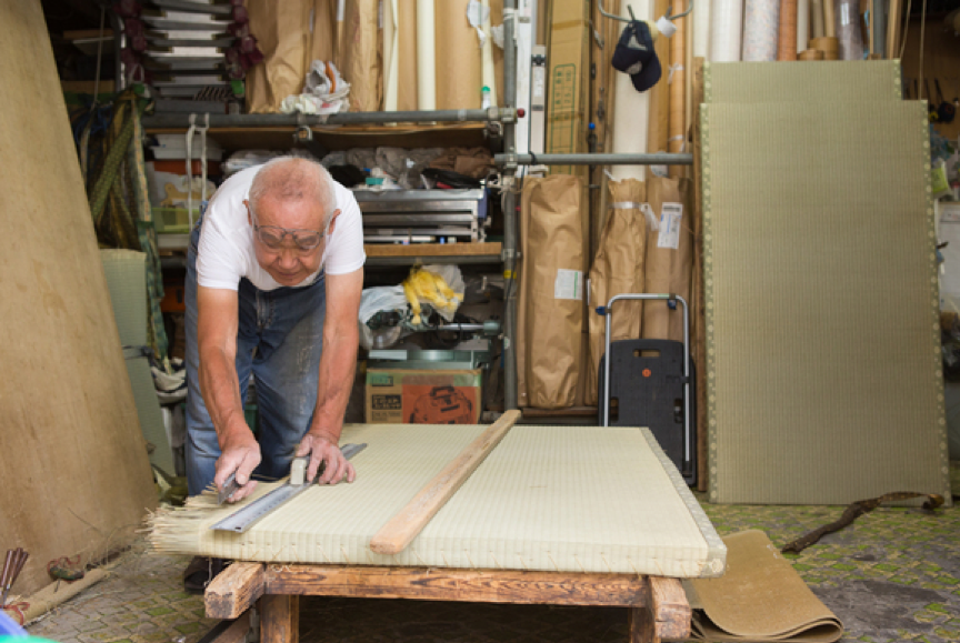 在“十条仲通商店会”中,我们遇见了正在进行更换榻榻米工作的店主。商店的右半部分销售地毯和窗帘等现代的室内用品,左半部分是更换榻榻米的工作区。店主表示:“榻榻米的传统到我这代人就不再盛行了,毕竟是夕阳产业,所以没办法。”随着榻榻米文化的衰退,在商店街上看到店主那样的工匠形象的机会也会随之消失,一想到这一点,还不免有些悲凉呢。